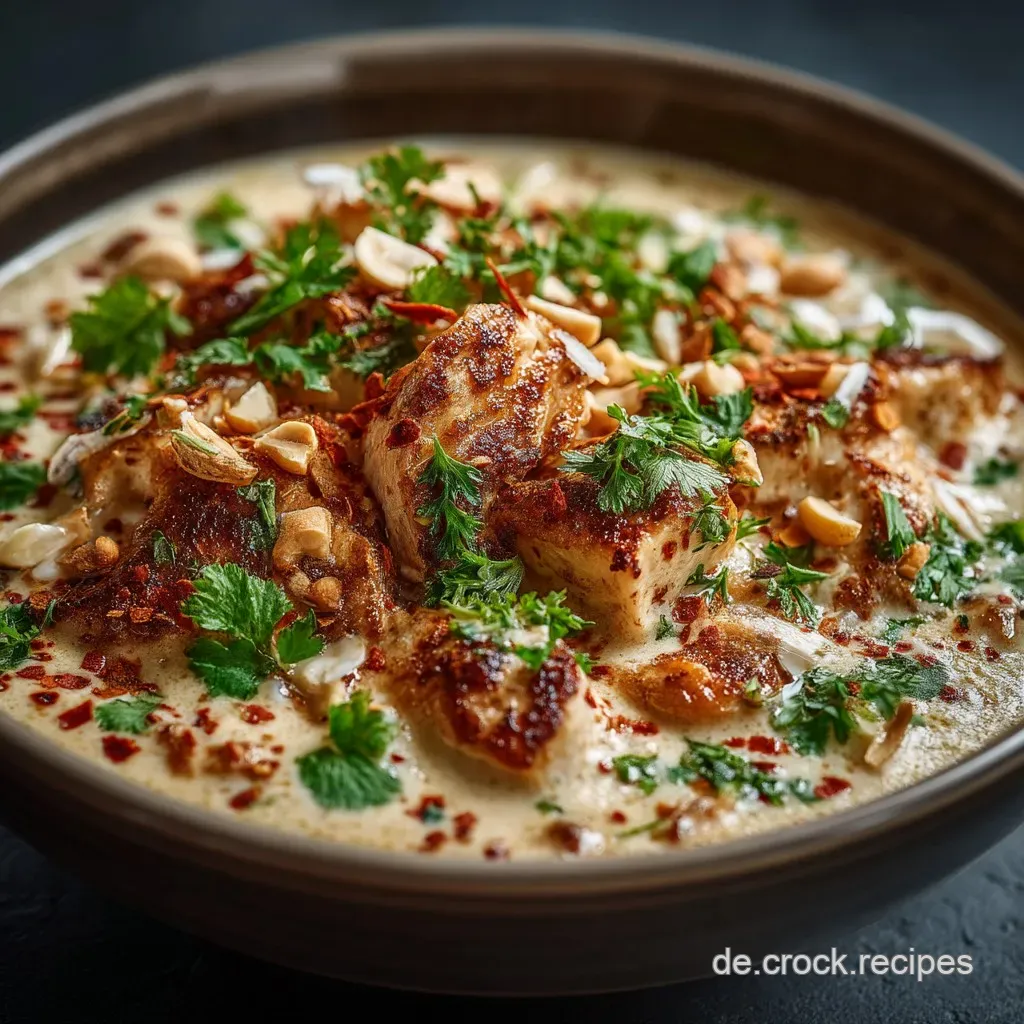 Kokosmilch ist für den authentischen südostasiatischen Geschmack und die cremige Konsistenz essenziell. Wenn Sie darauf verzichten möchten, können Sie alternativ eine Mischung aus Sahne (oder veganer Kochsahne) und etwas Gemüsebrühe verwenden, um die nötige Flüssigkeit zu erreichen.