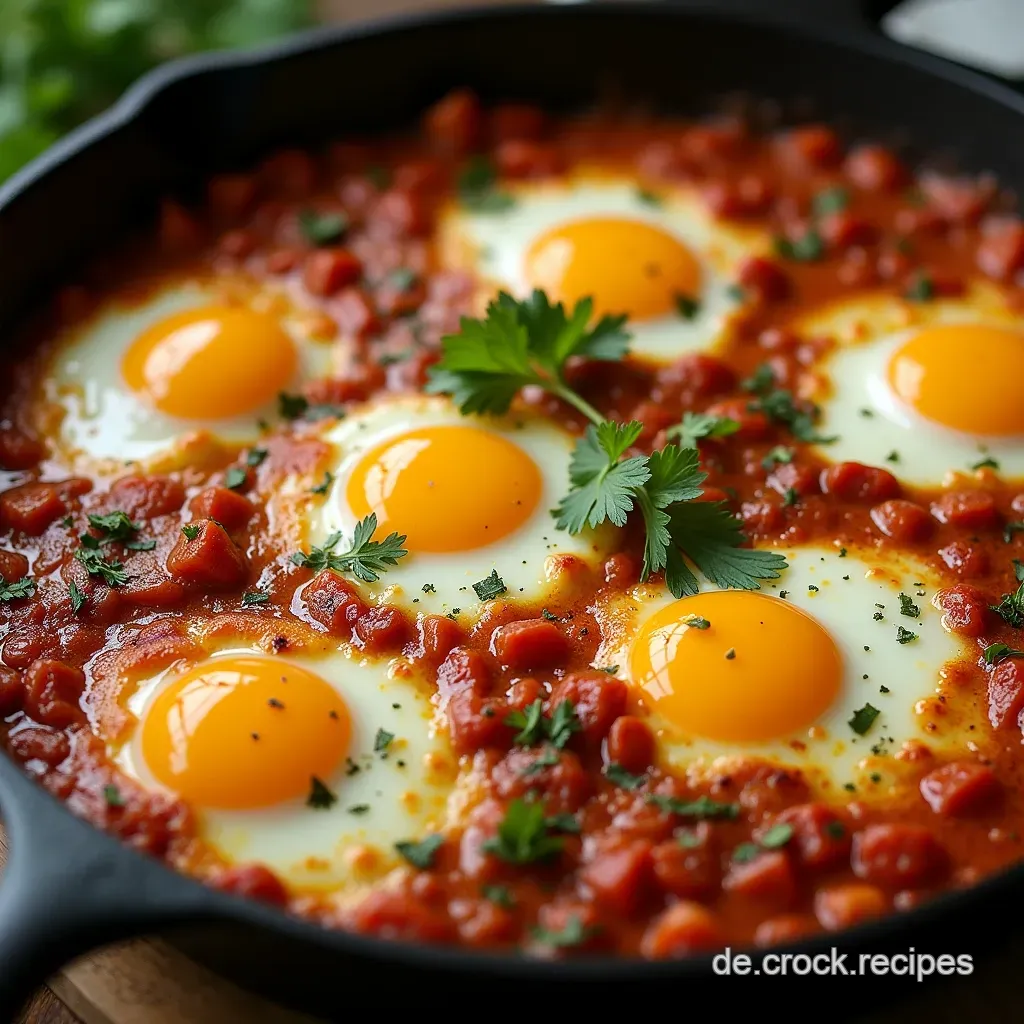 Vergessen Sie das trockene Brötchen; hier kommt pure Herzhaftigkeit auf den Tisch! Die „Sonnenaufgangs Pfanne“, wie ich sie liebevoll nenne, ist ein wunderbar rustikales Gericht aus pochierten Eiern in einer reichhaltigen, aromatischen Sauce aus Tomaten, Paprika und Zwiebeln, gewürzt mit Kreuzkümmel und Paprika.