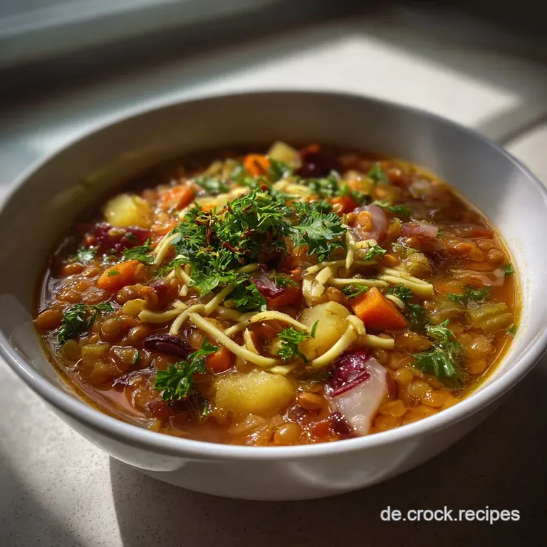 Genuss pur: Bunte Gemüsesuppe mit roten Linsen und Nudeln