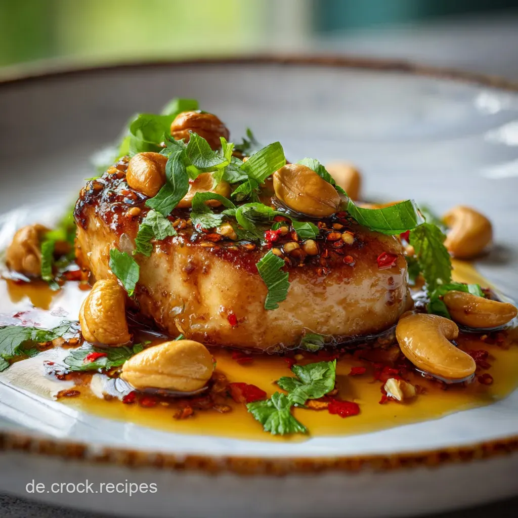- Flavor/Texture Hook: Knusprige Cashews treffen auf samtig weiches Fleisch in würzig-süßer Glasur