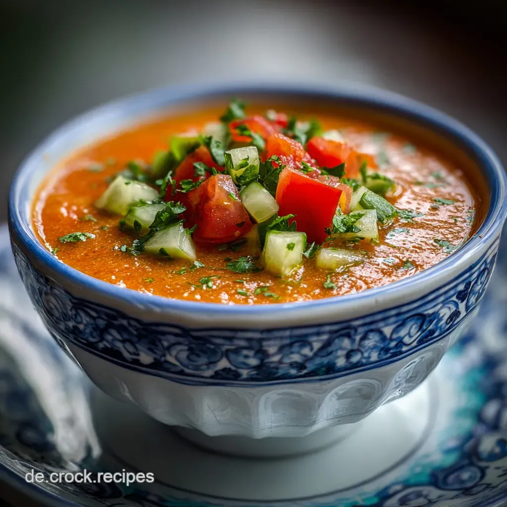 Erfrischende Kalte Suppe mit Tomaten und Gurken nach andalusischer Art Gazpacho