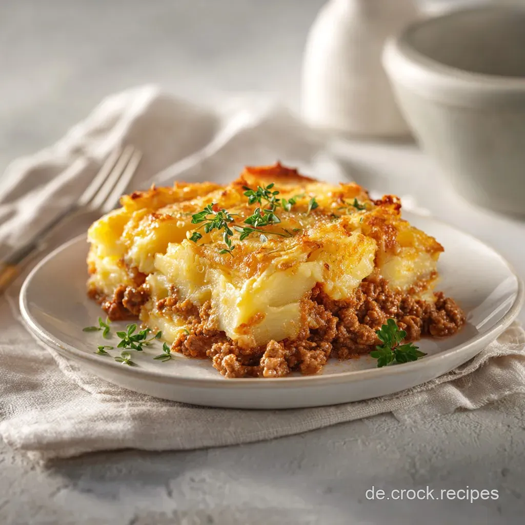 - Schichten: Fette eine Auflaufform und schichte abwechselnd Kartoffeln und Fleischmischung hinein.