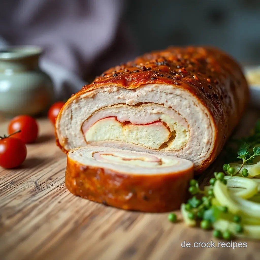 - Anrichten: Die Roulade aufschneiden und fächerförmig anrichten. Mit frischer Petersilie oder einem kleinen Rosmarinzweig dekorieren. Ein Klecks Preiselbeeren passt auch super dazu.