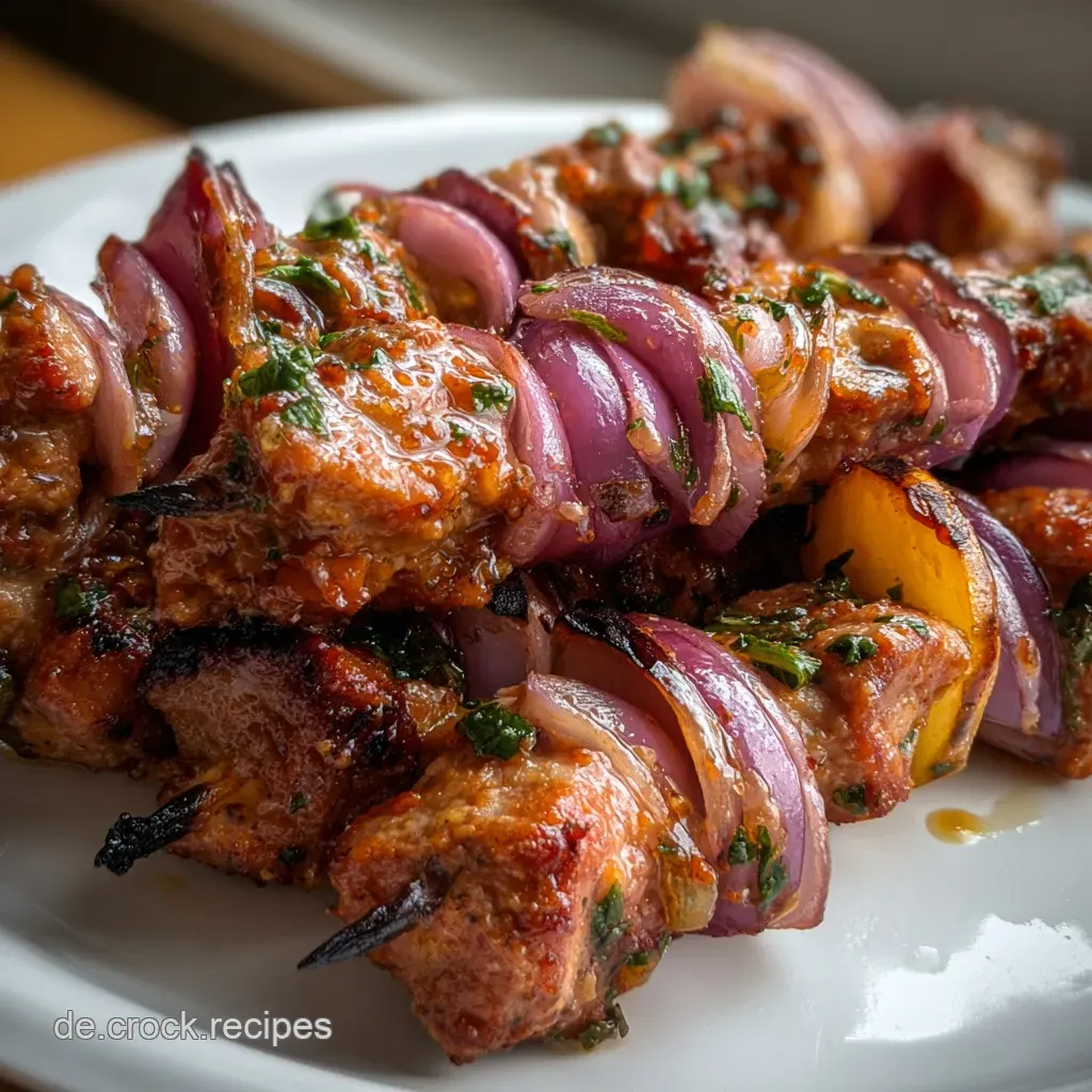 Der Duft von geröstetem Fleisch, säuerlichen Zwiebeln und rauchiger Glut ist einfach unschlagbar, oder? Wenn dieser klassische Schaschlyk auf dem Rost liegt, weißt du, der Abend wird perfekt.